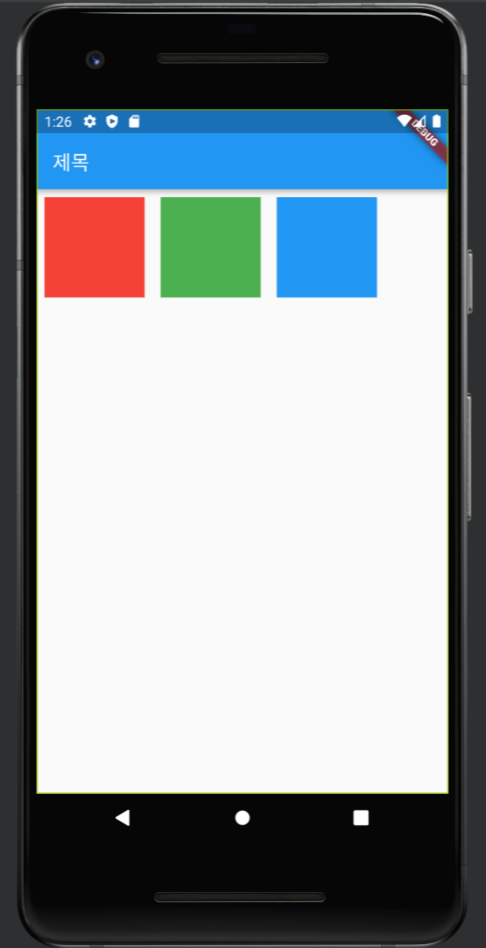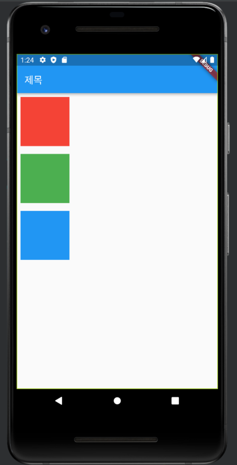 아래는 children 프로퍼티를 사용하여 차례대로 빨강, 초록, 파랑 container을 나열한 예제이다.