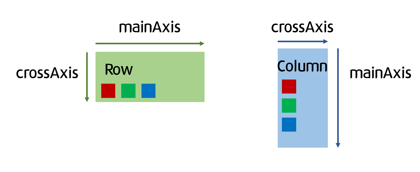 Row, Column과 같이 방향성이 있는 위젯은 mainAxis와 crossAxis에 관한 프로퍼티가 존재한다.
