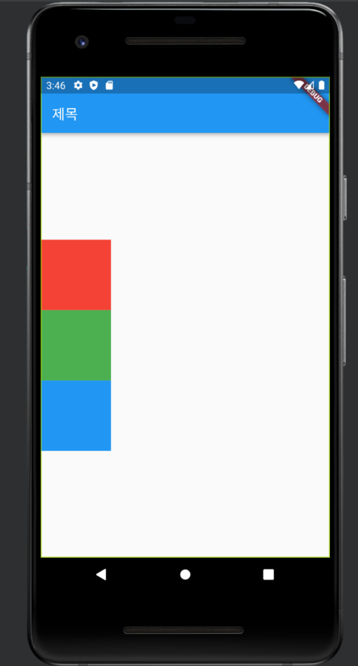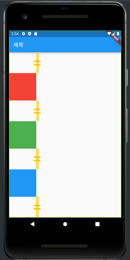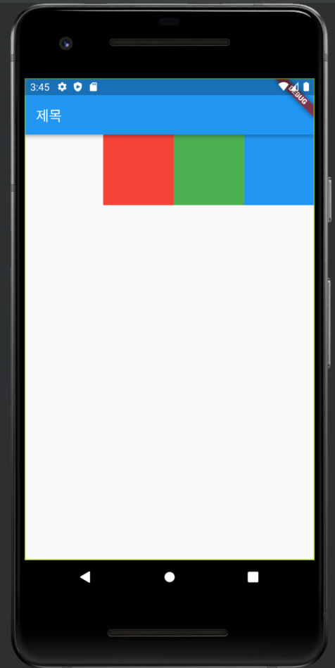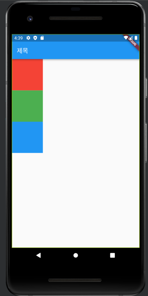 각 crossAxis는 기본 자식의 크기만큼 설정되어 있기 때문에 정렬해도 육안으로 구별이 되지 않을 수 있으므로 부모 Container의 크기가 앱 화면을 가득 채우게 하도록 세팅한 뒤 정렬하였다.