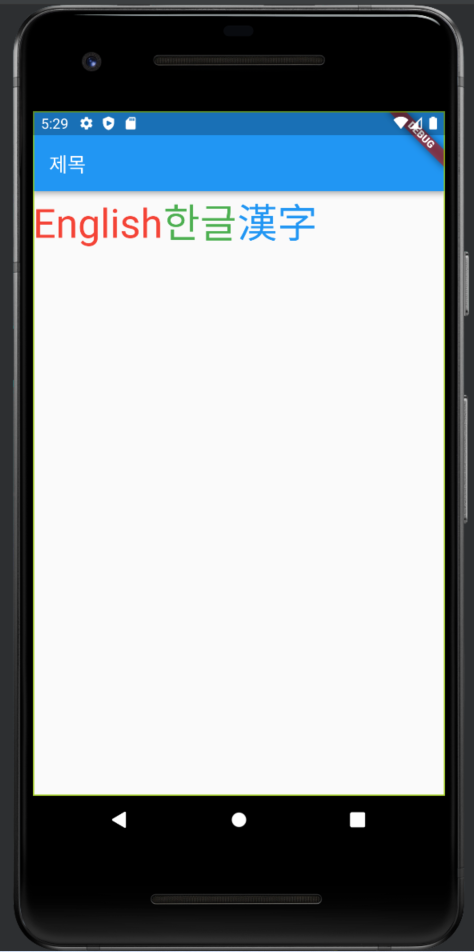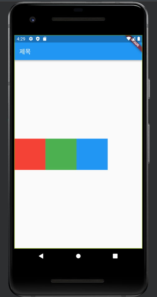 | spaceEvenly | child 위젯이 균등하게 배치되고, 위젯 사이의 여백 크기만큼 또 양 옆에 여백이 생긴다. |