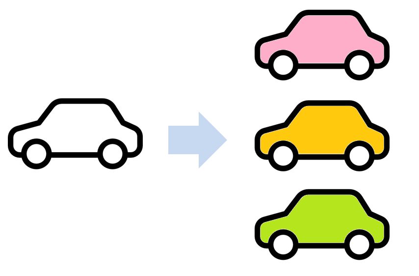 만약 아래와 같이 자동차의 기본 뼈대를 만들어 제공한다면, 색을 칠하고 바퀴를 다는 것만으로 자동차를 조금 더 쉽게 만들 수 있지 않을까?