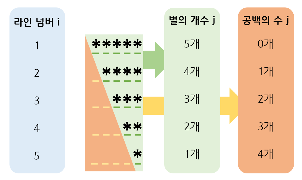 왼쪽의 공백 영역의 경우, 각 라인에서 출력해야할 공백의 수는 다음과 같다.