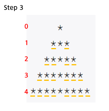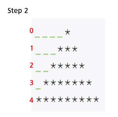 step 3. 출력해야하는 *의 수는 i(현재 출력해야하는 줄의 넘버)의 2배보다 하나 더 많다.