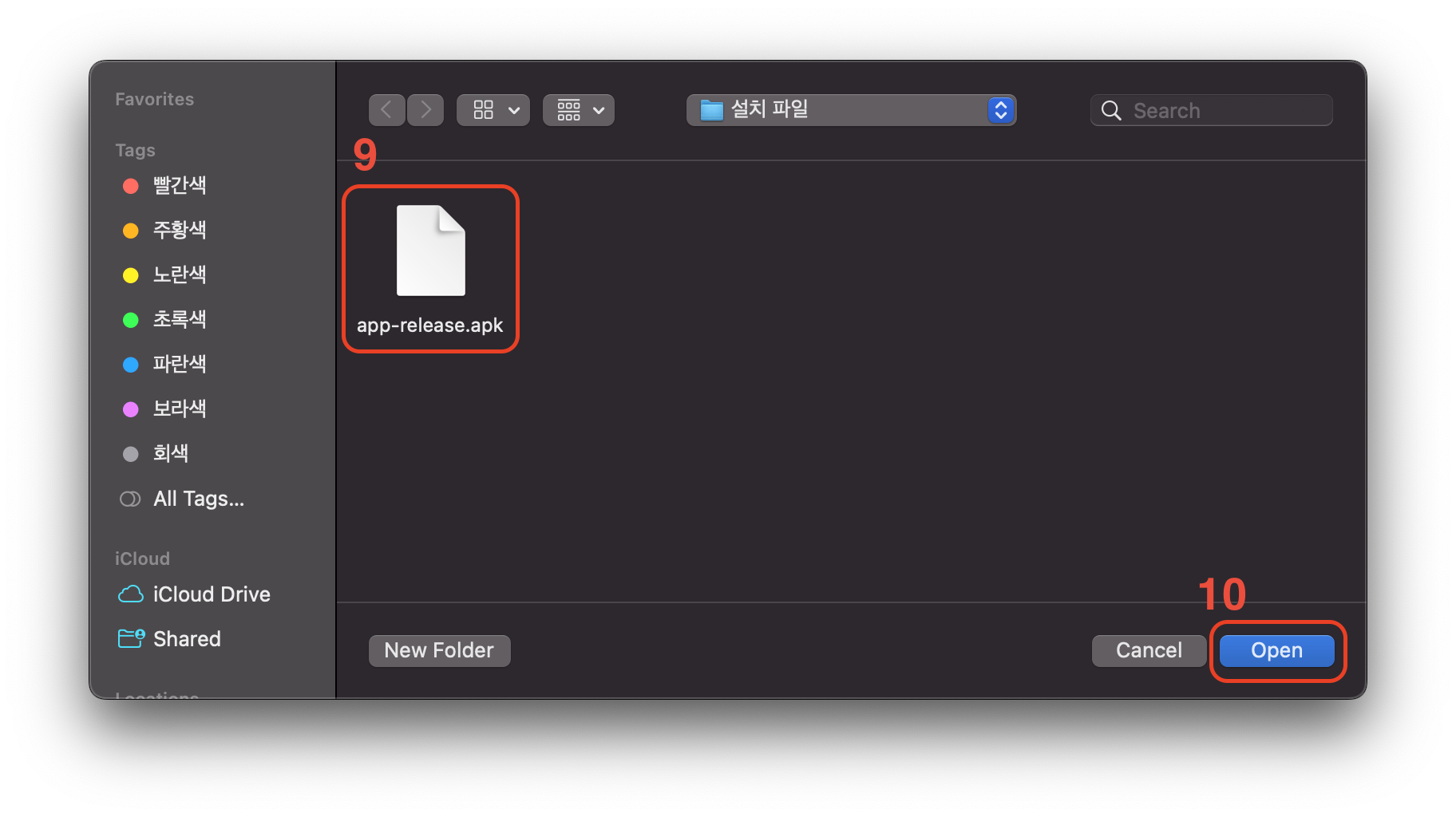 6. 준비된 .apk 파일 저장 경로로 이동하여 파일 선택 후 open
