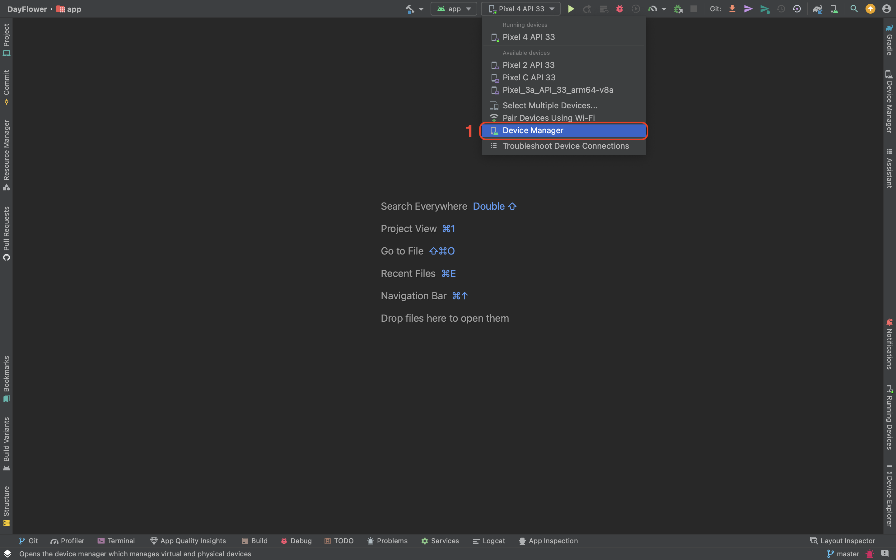 2. 안드로이드 스튜디오에서 에뮬레이터 실행
