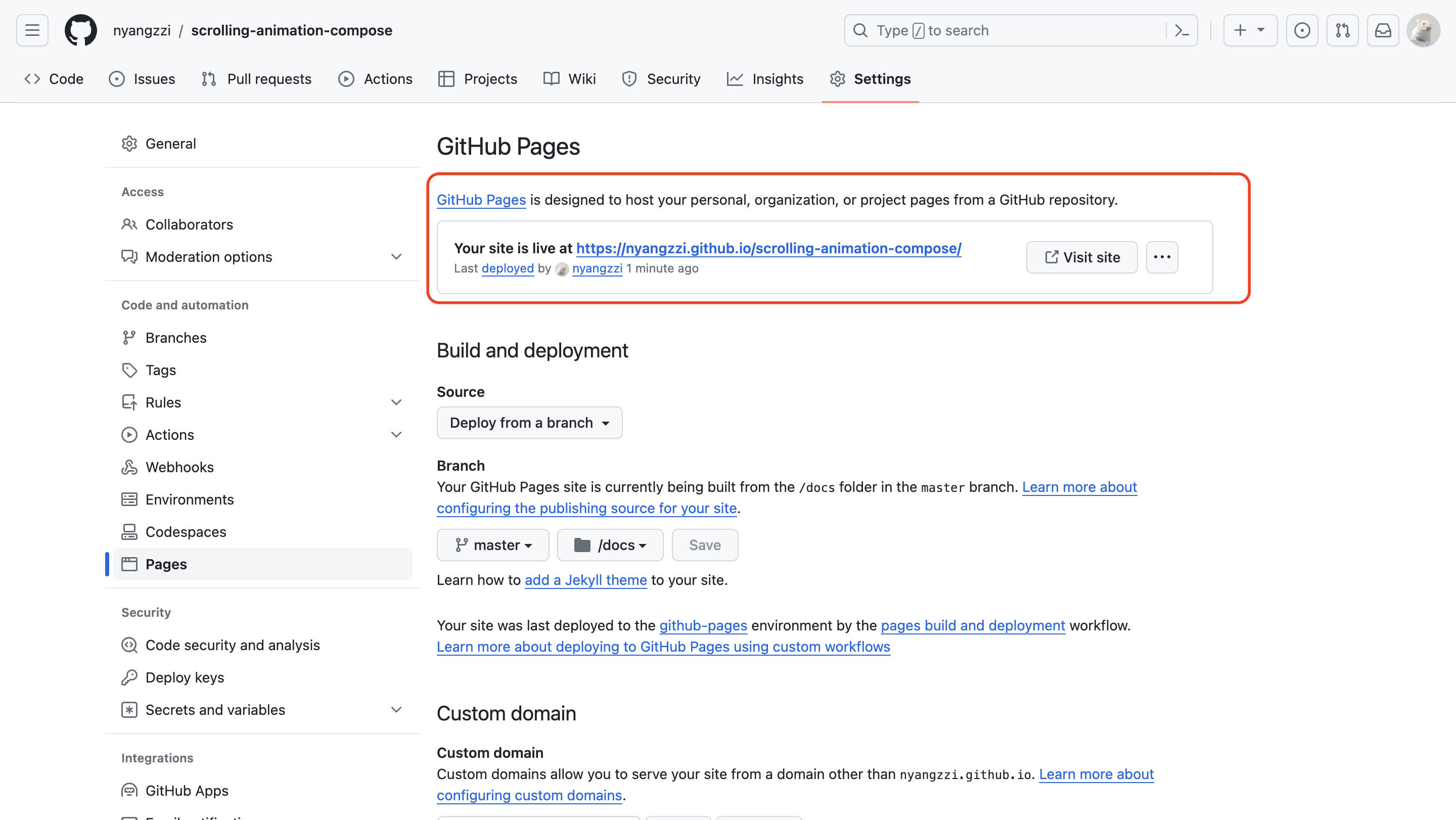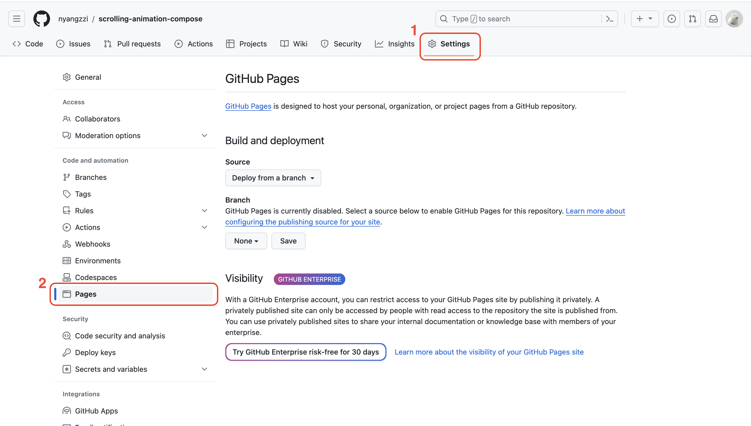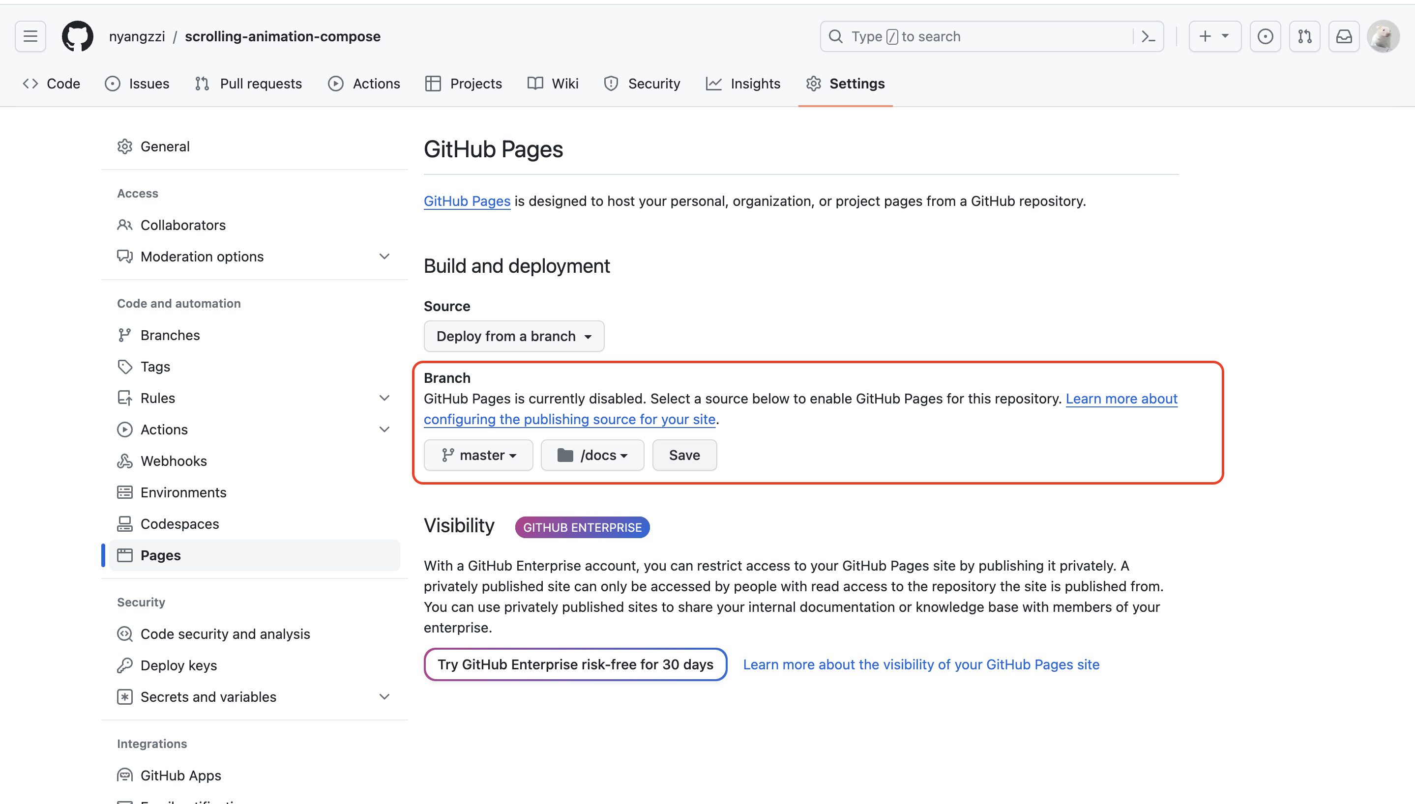 5. 레포지토리의 Setting - Pages 선택