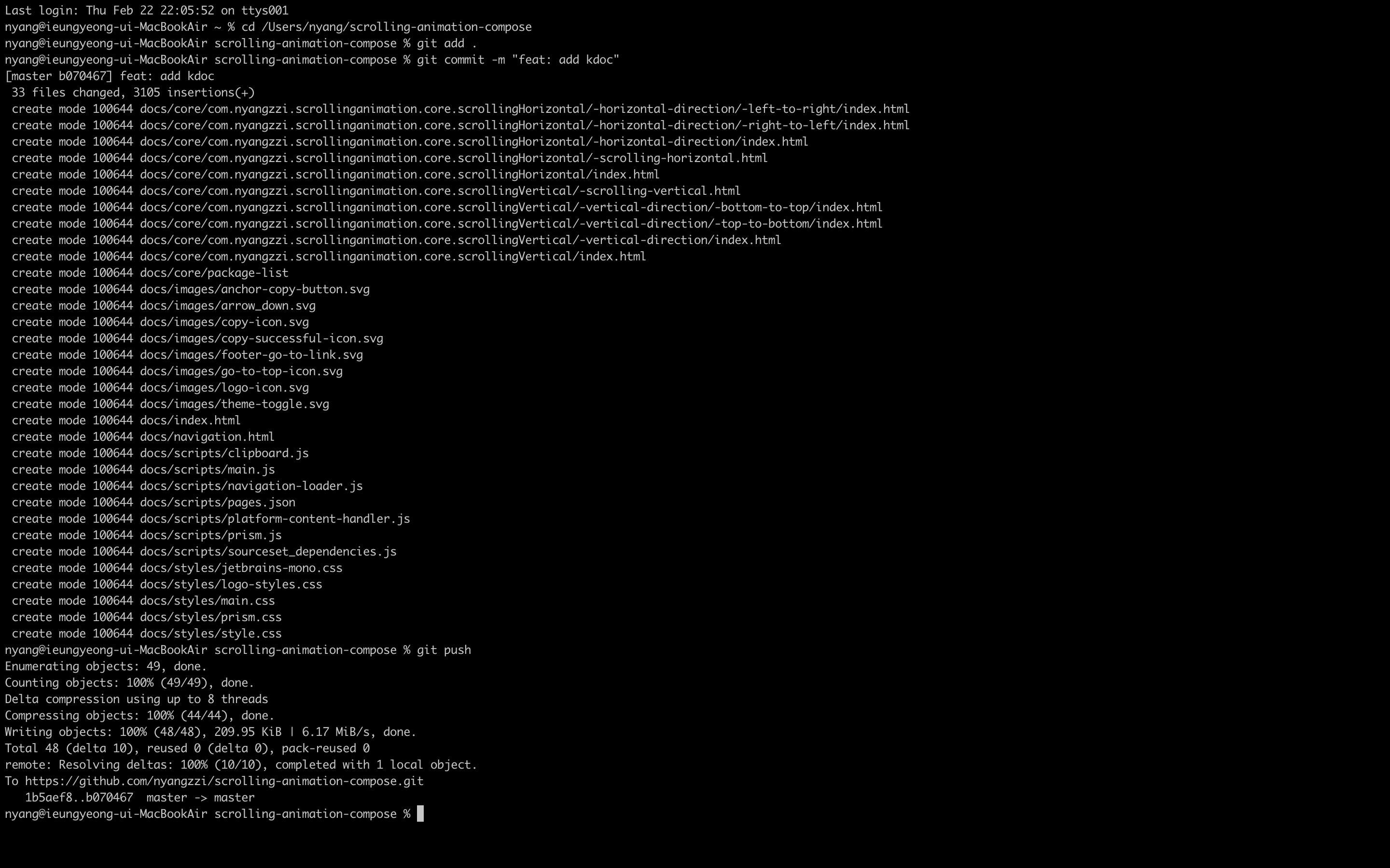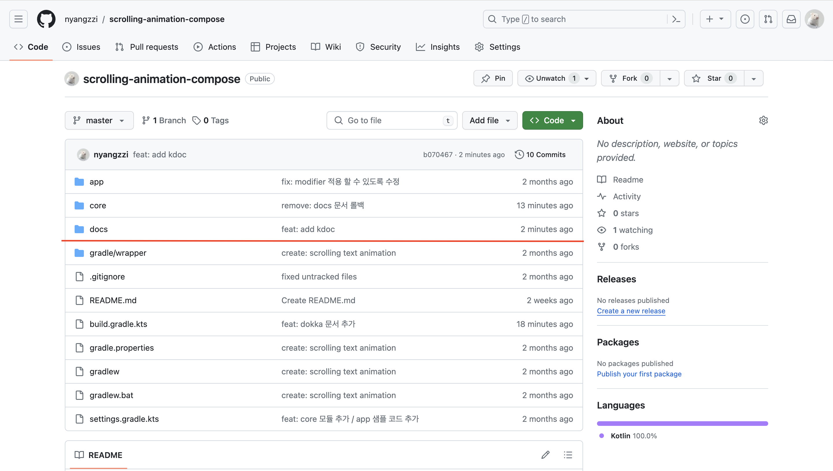 (여기서는 kDoc 문서를 업로드할 예정이므로 build/dokka/html 폴더 내부의 전체 문서)