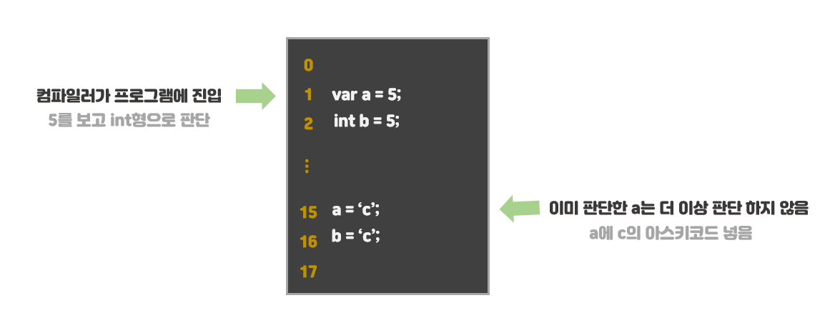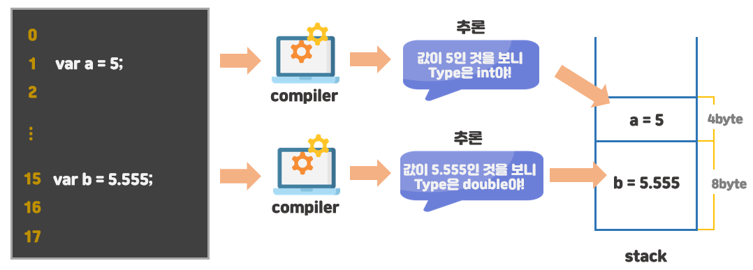 컴파일러는 가장 처음 프로그램을 실행할 때, var 형식의 타입을 추론한다.
