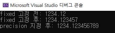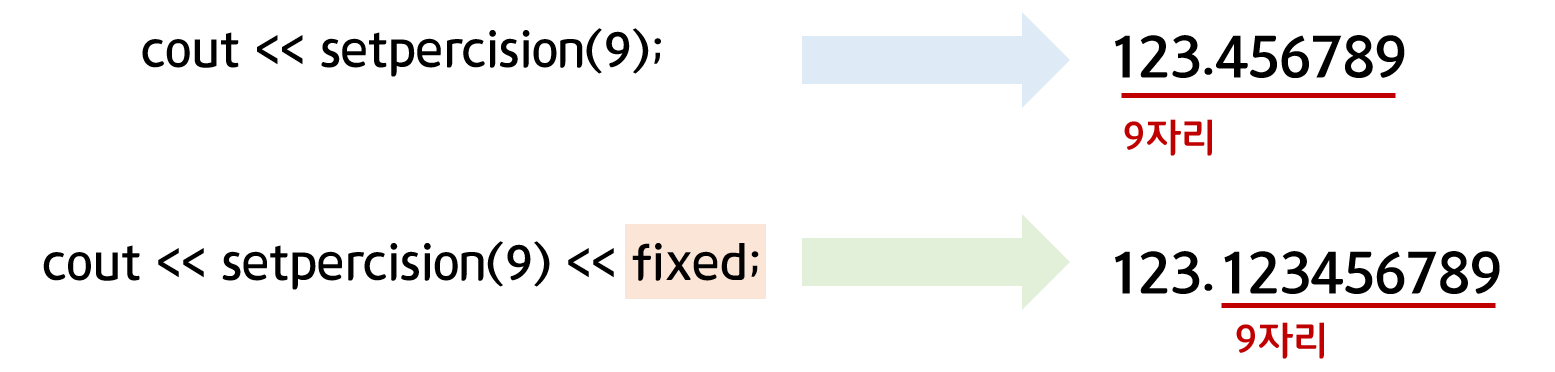 이때, fixed는 setprecision()과 분리하여 작성할 수 있다.