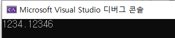 C++에서도 다음과 같은 계산을 하였을 때, 기본 출력자인 cout으로 출력 할 때 무한히 출력하지 않고 일정 부분에서 반올림하여 출력하는 것을 볼 수 있다.