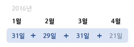 4월 21일이 며칠인지 구하고 싶다면, 아래와 같이 1~3월의 날짜를 모두 더한 뒤 21을 더해주면 된다.