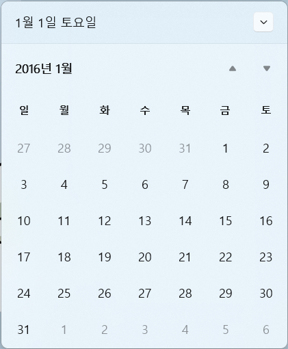 이때, 2016년은 윤년이므로 2월은 29일까지 있음에 주의한다.