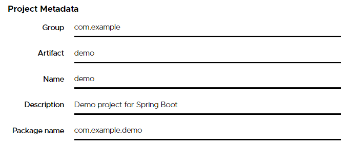- Package name : 패키지 이름 (Group과 Artifact를 설정하면 자동으로 만들어준다.)
