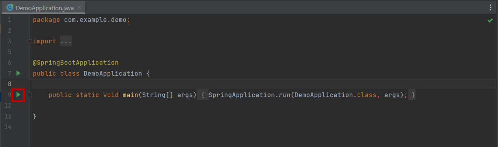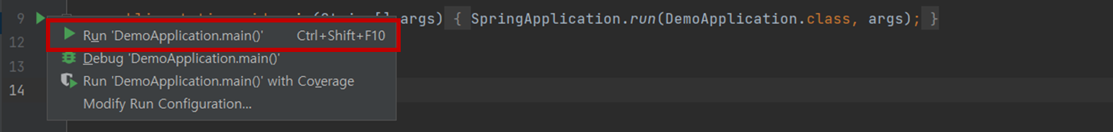 2. ▶를 마우스 클릭한 뒤 Run을 선택한다. (Ctrl+Shift+F10 도 가능)