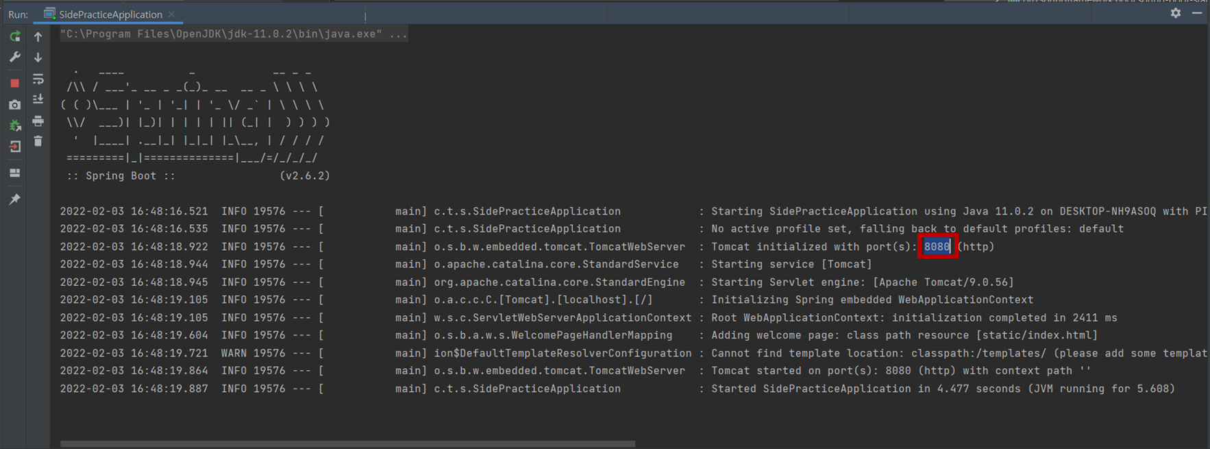 3. 하단에 다음과 같이 실행되면 성공