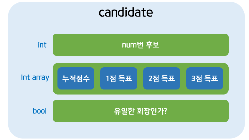 각각의 후보에 대한 구조체를 만들어 정보를 관리한다.