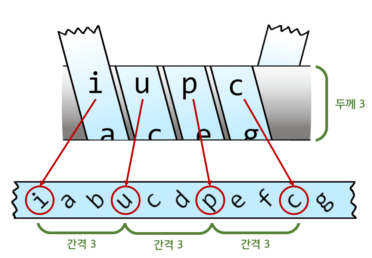 따라서 첫 번째 문자를 시작으로, 막대 두께(=간격)만큼 떨어진 문자를 모두 출력해주면 된다.